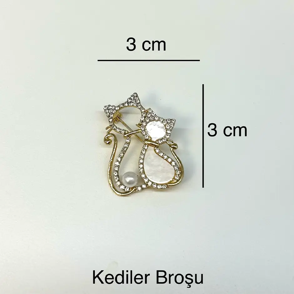 Altın detaylarla tasarlanan bu zarif çift kedi broşu, incimsi dokusu ve ışıltılı taş süslemeleriyle romantik bir duruş sergiler. Birbirine yaslanan figürleriyle sıcak ve sanatsal bir ifade sunan bu aksesuar, her kombine sofistike bir dokunuş katar. Hem günlük hem özel kullanım için dikkat çekici bir seçimdir. Boyutlar görselle farklılık gösterebilir. Kimyasal ile temas ettirmeyiniz.