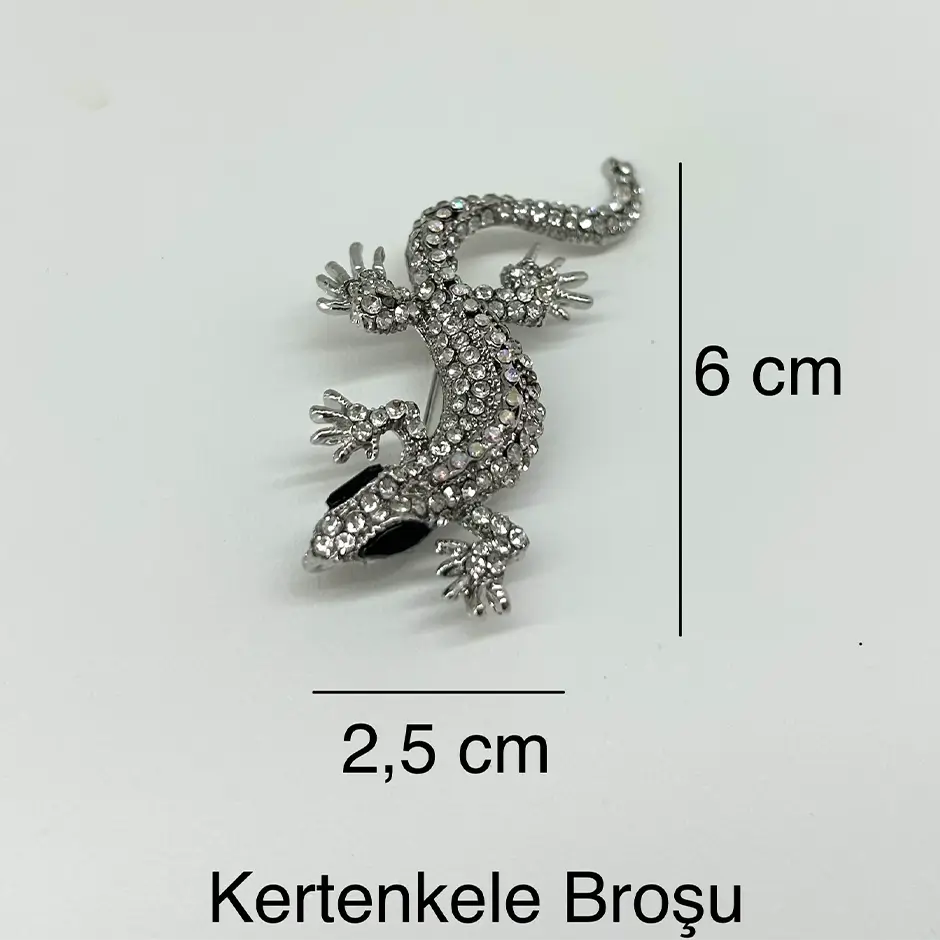 Parlak taşlarla süslenmiş taş detaylı kertenkele broş, özgün tasarımı ve ışıltılı görünümüyle dikkat çeker. Modern ve cesur bir stilin simgesi olan bu aksesuar, sade kombinlere dinamik bir hava katar. Hem broş hem de kolye olarak kullanılabilir, böylece her iki stilin de şıklığını yansıtabilirsiniz. Şıklığı zarafetle buluşturur. Boyutlar görselle farklılık gösterebilir. Kimyasal ile temas ettirmeyiniz.